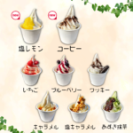 ソフトクリーム 塩レモン(NEW) コーヒー(NEW) いちご ブルーベリー クッキー 塩キャラメル キャラメル あずき抹茶 各500円